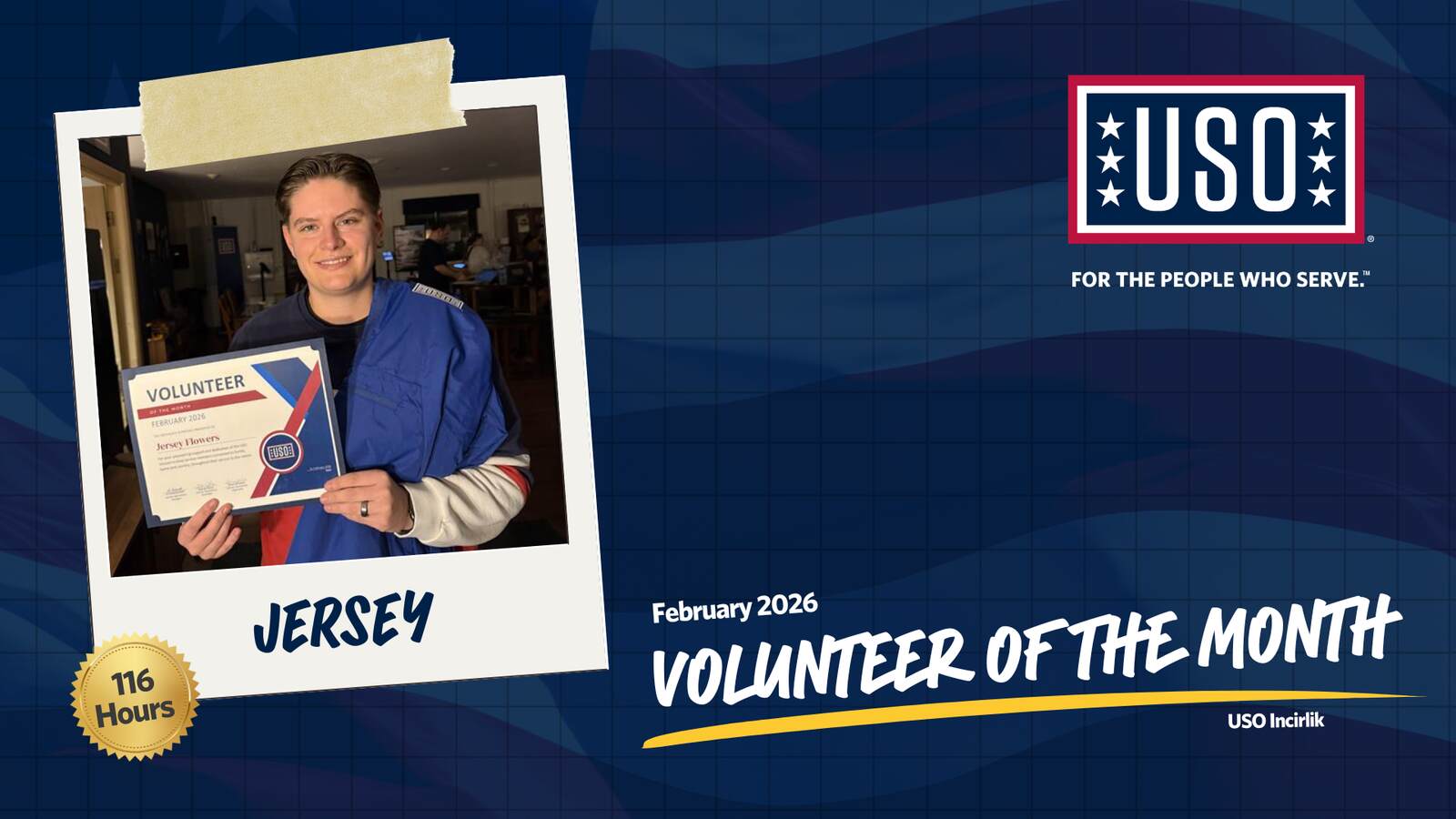 USO Incirlik is proud to recognize Destiny as our Volunteer of the Quarter for Quarter One 2026!